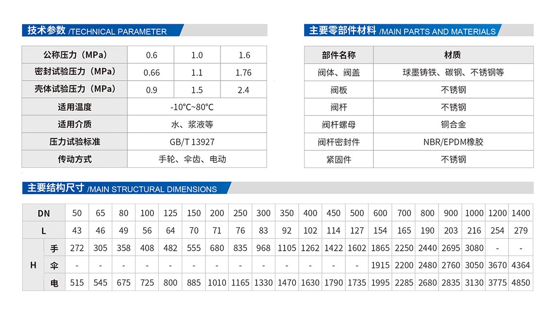 6、閥體內(nèi)外涂覆環(huán)氧樹(shù)脂層,閥板緊固件采用不銹鋼,密封件為丁腈橡膠,防腐性能好。
