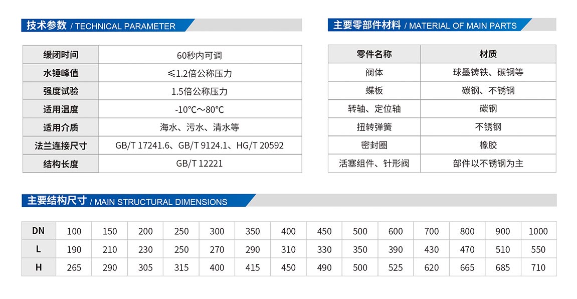 3、通過閥體兩側的活塞及控制活塞的油壓系統(tǒng)達到緩閉作用,噪聲小。